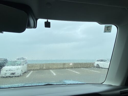 いつもは海側に停めるんだけど今日は山側。おトイレの前が空いてたからそこにね。