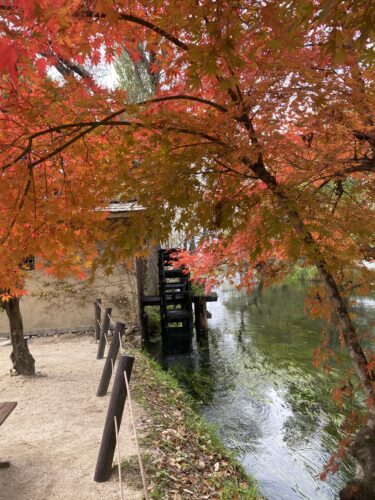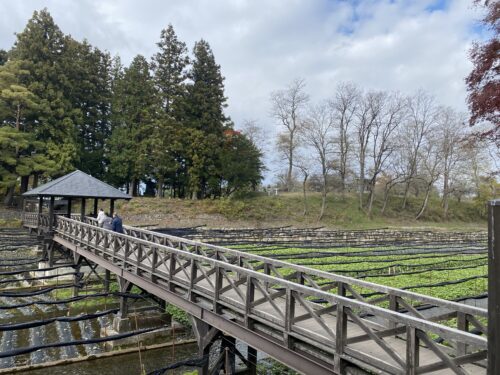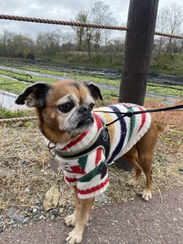 寒い時間はあさひにはお散歩もあやういので、おトイレだけさせて、まずはガチ観光地。安曇野の大王わさび農場へ。