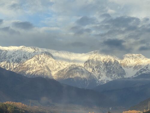 朝の山々。昨日よりは気温は高くなりそうだけど、空気の冷たい感じは変わらず。
