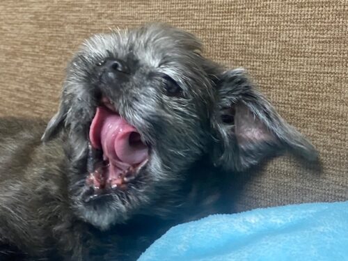 んで、撫でてあげるとやっと気が付いて尻尾振るかと思いきや・・・・・
