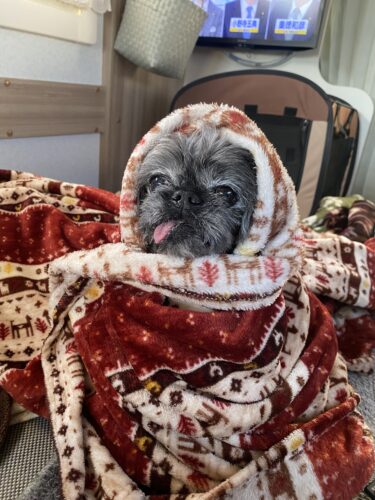 なんで我が家のわんころずは歴代このまちこ巻きが似合うんだろう~💛