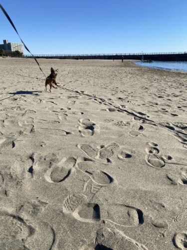 いつもの長浜海浜公園でこへの運動欲を満たす。