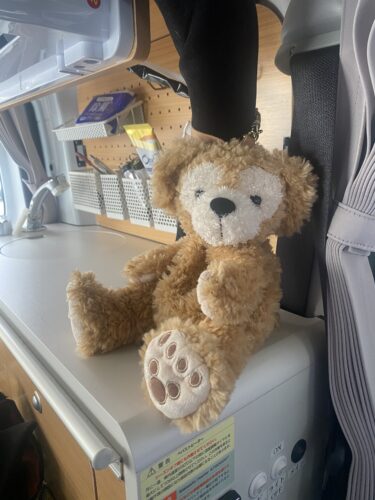 ダッフィー君の背中、小物入れになってて、先代わんころずの思い出が入ってる。