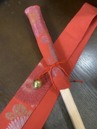 んで試作部分の残りで金剛杖の持ち手のところをお揃いで作ってみた。
