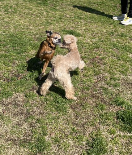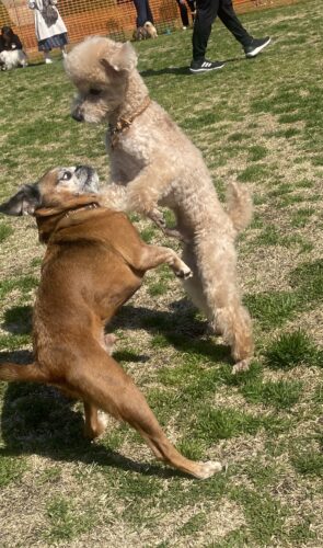 雨も上がってお天気も良くなったので、久しぶりのシンボルタワードッグラン。