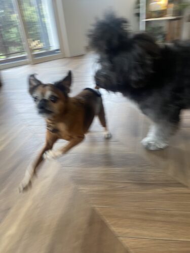 ここんとこ珍しく日中のシフトだったので晴れてた二日間わんころずのお散歩に行けず、今日はシフトお休みだったのに大雨”(-“”-)”