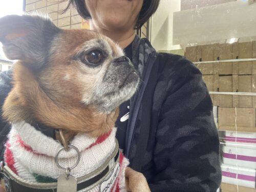 こへ、寒そうで震えるので抱っこして私のフリースにインさせてた。
