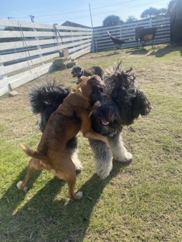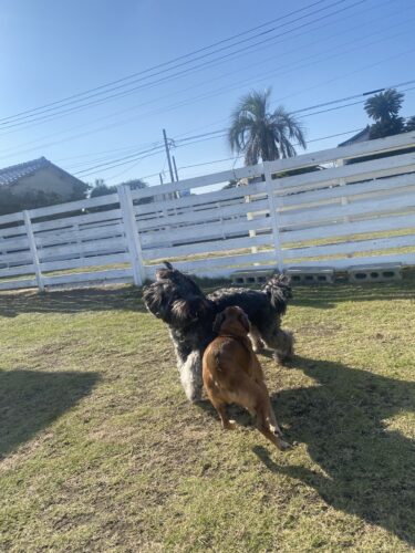 のんびりしてるように見えるけど、わんころずはお肉の取り合いで小競り合いしてるし、椅子に乗ろうとしては椅子ごと転がるしどったばた(笑)