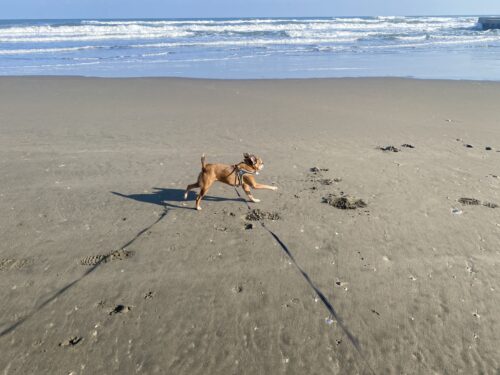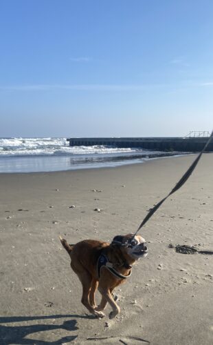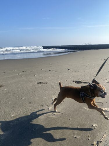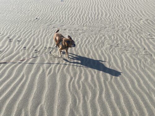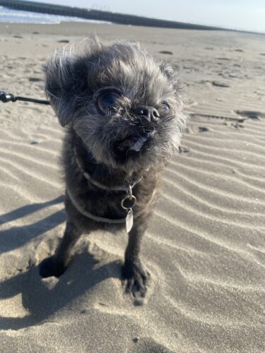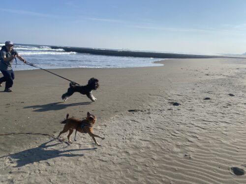 この時のお散歩はあさひ大殿も頑張って砂浜まで行ったんだよ~。