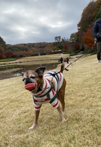 ボール投げでしよ♪・・・・って咥えて走ってったら投げられないよ、こへーーー