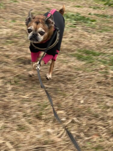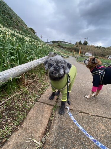 止んだのを見計らってまずは二匹一緒にお散歩に出てみたけど、今日は特にあさひの歩みが鈍い。