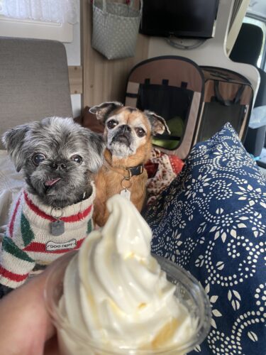 おしっこしてくれればすぐにでも車に戻すのに、本人(犬?)歩くのに精一杯でおしっこもしてくれないから、とりあえず一度車に戻り態勢立て直し。