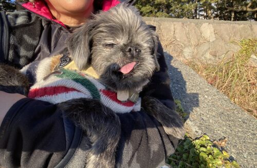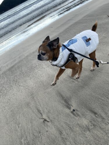 ふともんじろうの最後のころのお散歩で、海見ながら膝に乗せてたの思い出して、なんだか泣けてきて困ったさ。