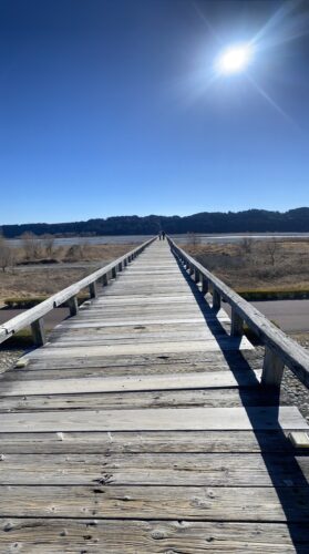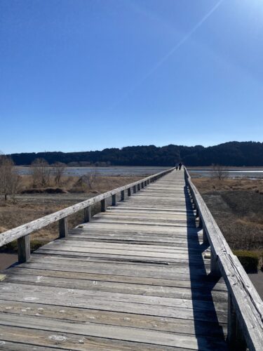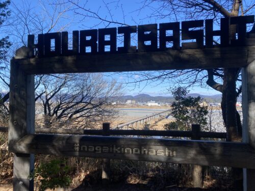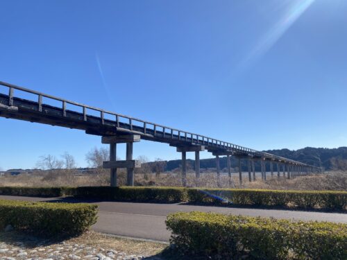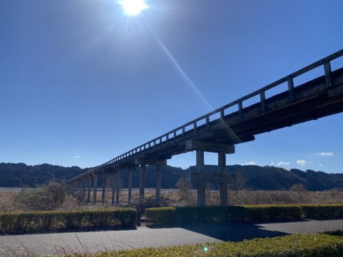 次は見てみたかった大井川にかかる世界一の長さの木道歩道橋、蓬莱橋。架橋されたのは明治12年。長きにわたって今でも農道として現役の橋です。