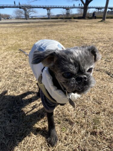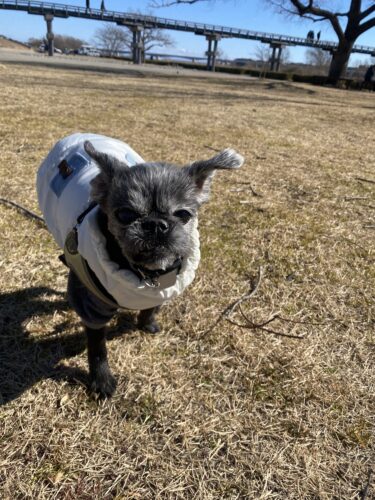 全長897.4メートル、通行幅2.4メートルの橋はわんころずもOKなんだけど、こへはもともと橋があまり好きではないし、足元のおぼつかないあさひも危ないだろうと、橋の入り口の公園でわんころず散歩。