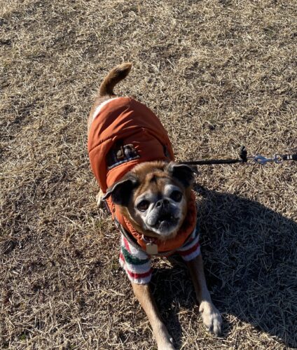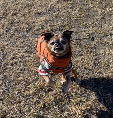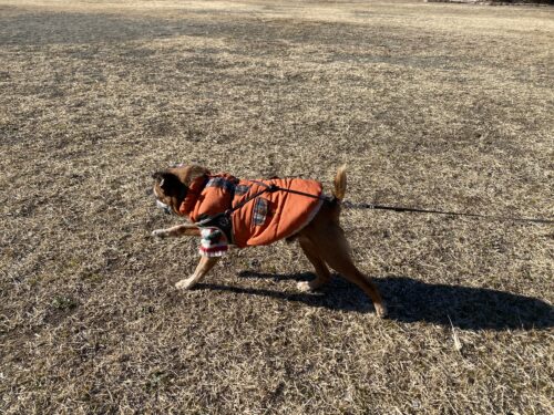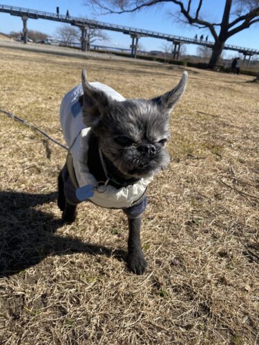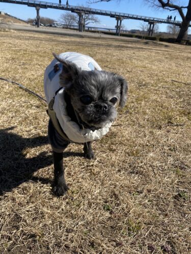 少し低い所なので風もさえぎられているはずなんだけど、よちよち歩きのあさひの耳が飛べそうなくらいはためいているくらいの強風\(◎o◎)/!