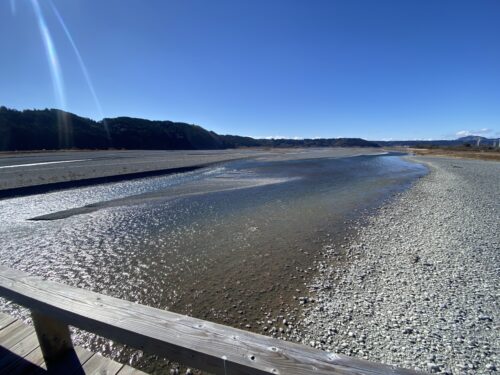 すっと川を貫いていく姿は美しいですが、今日は何しろ強風、そして「箱根八里は馬でも越すが越すに越されぬ大井川」・・・・はやっぱりほぼほぼ水が流れていなくて私でも渡れるっ・・・と言う少し痛々しい感じ。