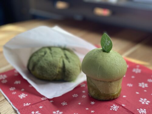 ベーカリーで焼きあがったばかりのお茶を使ったパンいろいろ購入。