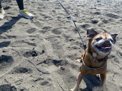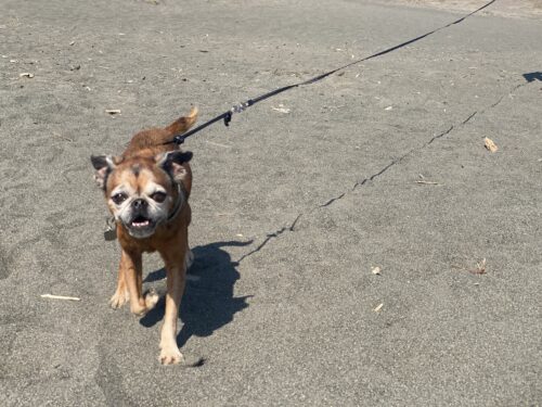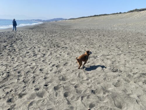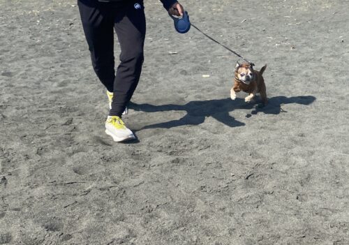 いつもは私一人で二匹を連れてお散歩なので、あさひの歩みに合わせてゆっくり散歩。