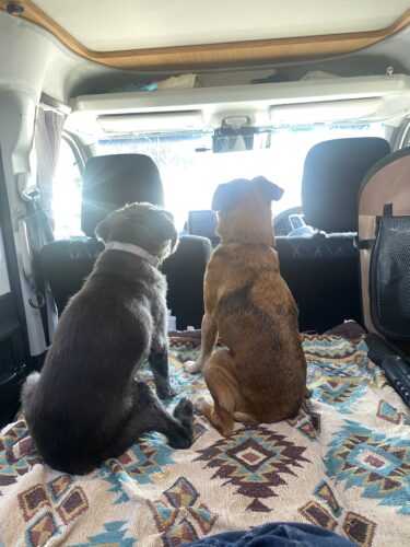 そして車に戻ってじょんさんが美味しいものを買って来てくれるのを待つ二匹と一人(私だ(笑))