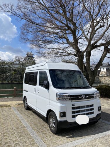 ヴィータ君と今治城。まるでキャンピングカーの宣伝写真(笑)
