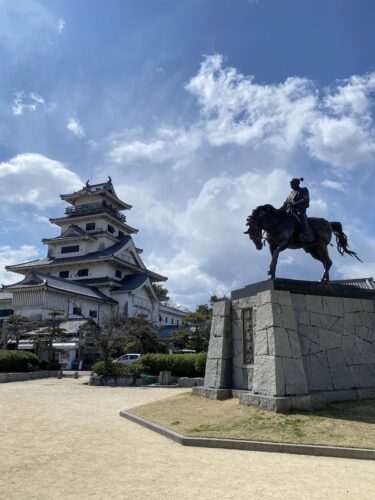 藤堂高虎像と今治城