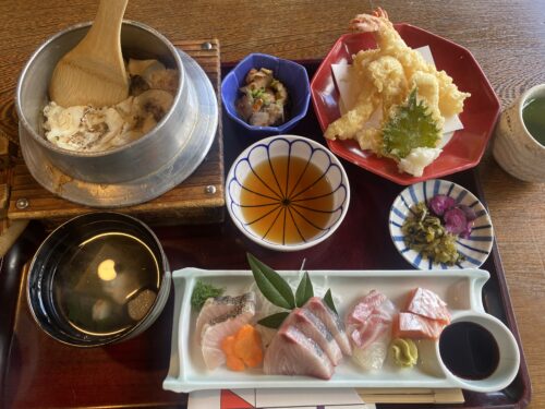 来島定食のご飯を鯛釜飯に変更してもらった。
