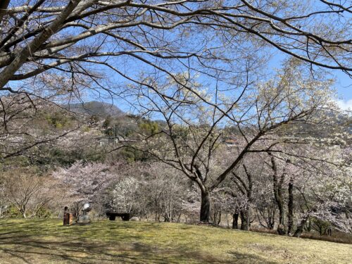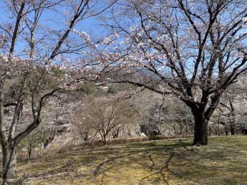 公園の広場から川に向かっての斜面に桜が咲いてるので、広場から見るとインフィニティ温泉ならぬインフィニティ桜(笑)