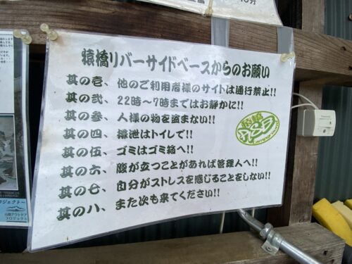すぐ隣のキャンプ場。猿橋リバーサイドベースキャンプ場へ。