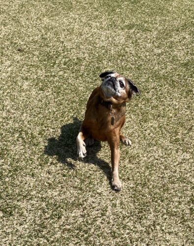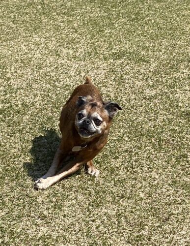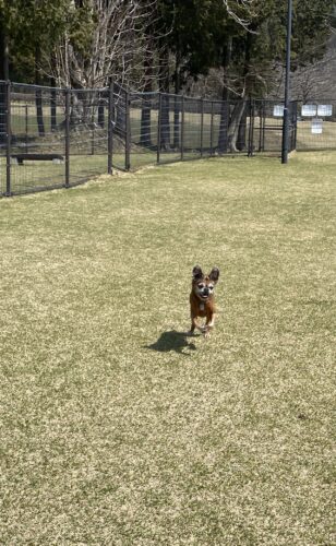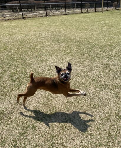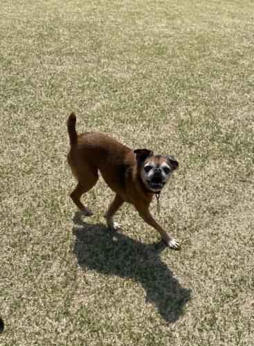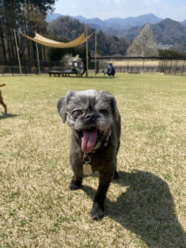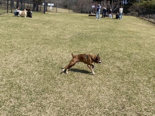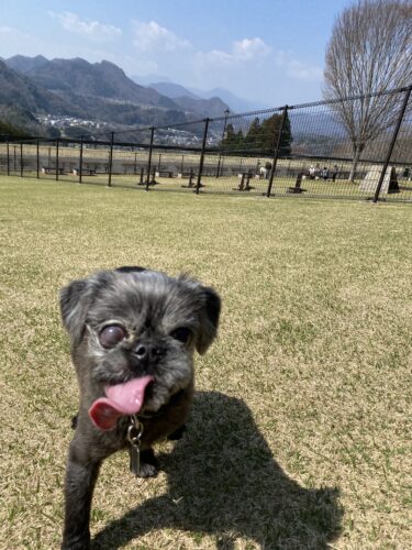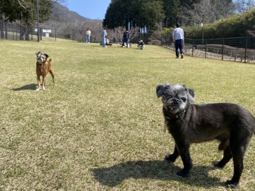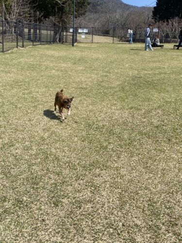 写真だと平坦に見えるけど、このドッグラン、すごい急こう配で、気を抜くとあさひ転がっちゃいそうだから目が離せない