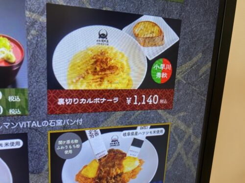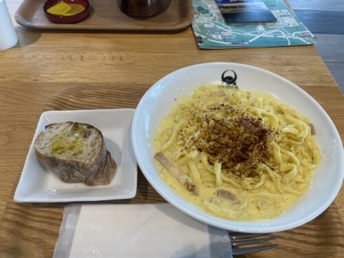 レストランでいただいたのは「裏切のカルボナーラBY小早川秀秋」 ← なんじゃそりゃ(笑)